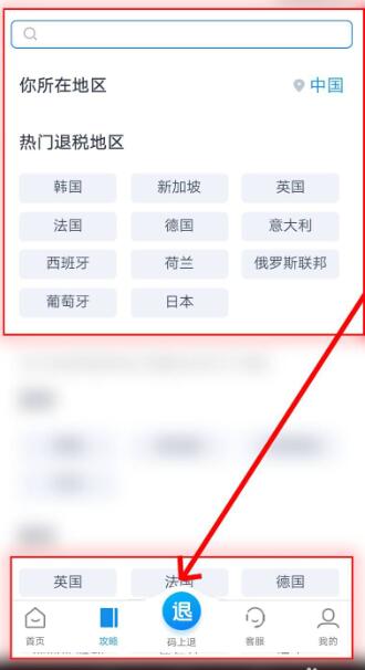 6、接着用户点击上个页面中间不同选项之后,我们可以在搜索栏内确认商店所在的国家与名称,从而进入退税的流程。