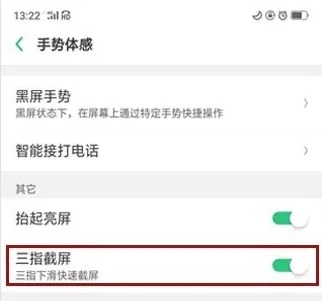 打开设置,再点击“智能便捷”,从中选择“手势体感”,打开“三指截屏”后的三指截屏即可。