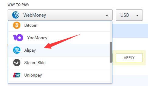 第三步,在“WAY TO PAY”下选择支付方式,一般选择“ALipay”(支付宝)