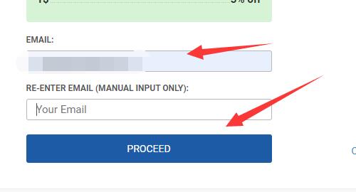第四步,在下方填写两次你的邮箱地址,再点击“PROCEED”(邮箱地址是用来售后的,所以很重要)