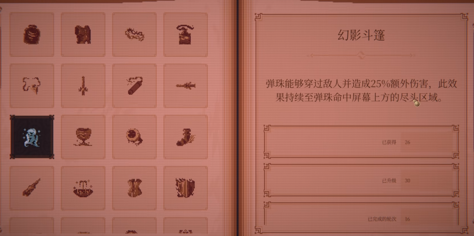 除弹珠本体外,配套被动道具亦是完整构筑不可或缺的一环。部分关键被动不具备合成路径,但需满足前置条件方可获取,例如叛徒兜帽(即幻影斗篷)与幽灵护盾,均需先选定特定雕塑类道具后才可解锁;而诺斯费拉图所需的部分合成素材,则依赖特定关卡掉落或前期路线选择。其余常规基础被动可通过普通关卡稳定获取,合理搭配可进一步放大诺斯费拉图的吸血转化效率与蝙蝠召唤稳定性,最终形成攻防一体、循环自洽的战术体系。