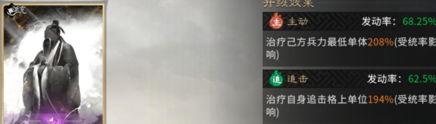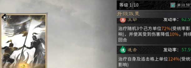 高顺承担整套体系的节奏驱动职能。其天赋“统兵列阵”可在战斗初始即为全体友方单位施加“统兵”状态,并同步将队伍格挡率提升至满值,显著增强前中期承伤能力。觉醒技能“陷阵之志”为核心引擎:一方面可叠加“统兵”层数以持续强化防御,另一方面具备概率触发我方召唤物二次行动的能力,配合主动技能使用,可在队伍血量偏低时实现精准治疗,形成攻防节奏闭环。