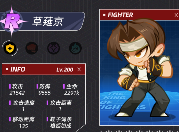 草薙京定位为持续型范围输出角色,其灼烧伤害机制可叠加多层Debuff,对Boss类目标具备显著压制力。碎片来源覆盖公会建设、周常挑战及限时活动,全程无付费依赖。前期即可成型参战,中后期仍保持稳定DPS输出能力,是零氪阵容中不可或缺的火力中坚。