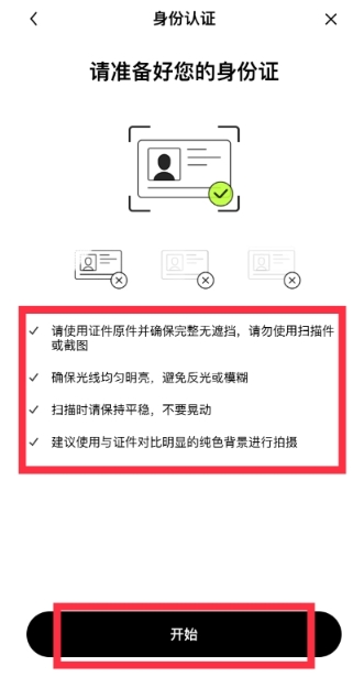 选择身份 证作为认证材料,按要求上传清晰的正反面照片:
