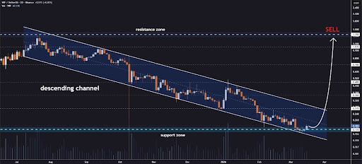 在此通道形态内,WIF持续形成更低的高点和低点,印证了此前看跌趋势与顽固抛压。但近期价格走势显示,该迷因币正在测试通道下轨——当前位于0.170至0.185美元的关键支撑区间。