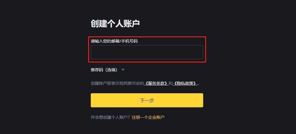 1.访问币安官网,点击左侧"使用邮箱/手机号注册"选项。