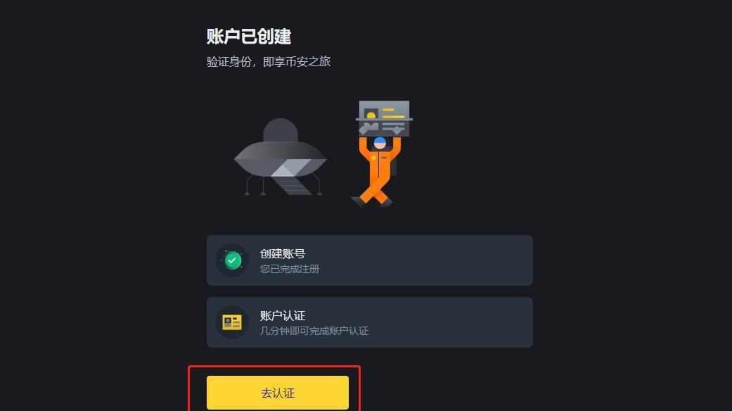4.账号创建成功后,点击"去认证"进行身份验证。