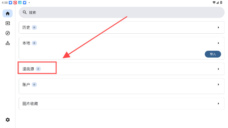 1.启动软件后,在主页界面找到并点击漫画源选项;