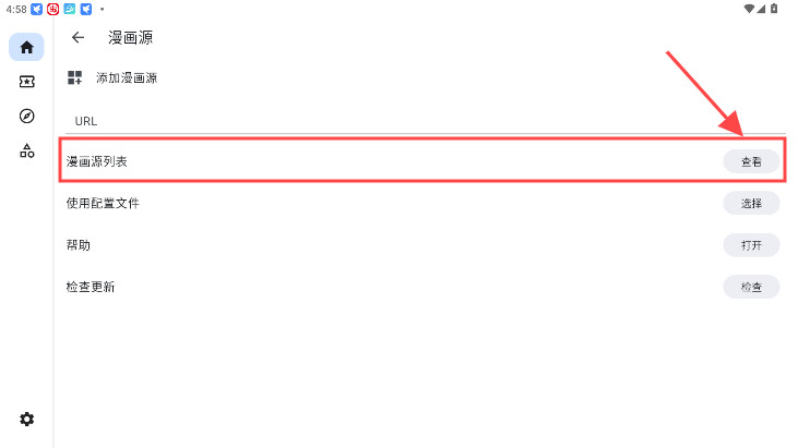 2.进入漫画源页面后,点击列表右侧的查看按钮进入详情;