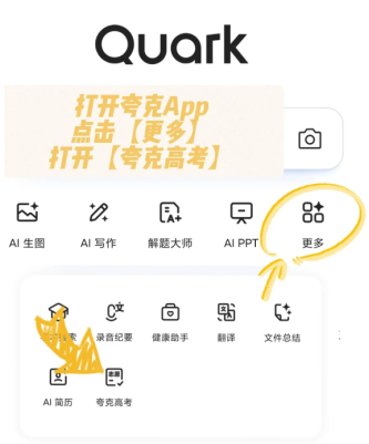 第一步需要启动夸克APP,在功能菜单中找到【夸克高考】服务模块。