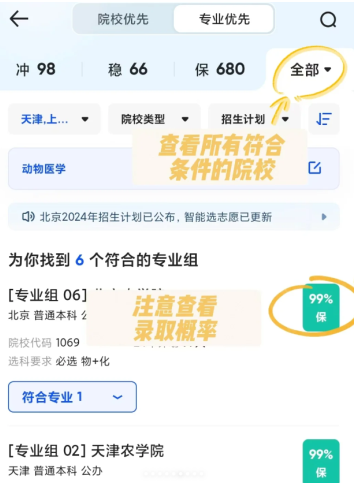 但需注意系统给出的录取概率仅供参考,建议只将90%以上概率的选项作为稳妥选择,同时要自行分析专业录取位次的年度变化趋势。