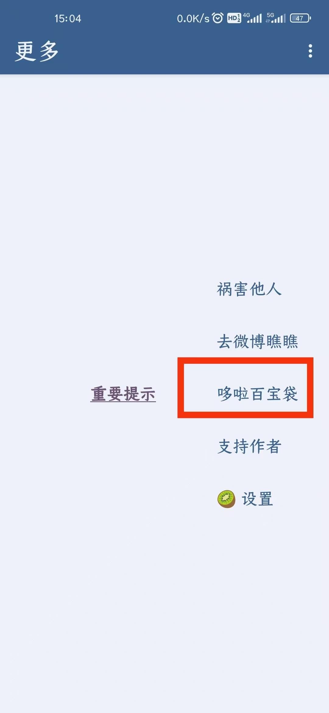 2. 在"哆啦百宝袋"中关闭跳过提示
