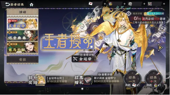 全新特出器者【金冠带】(远击)活动期间招集概率大幅UP;