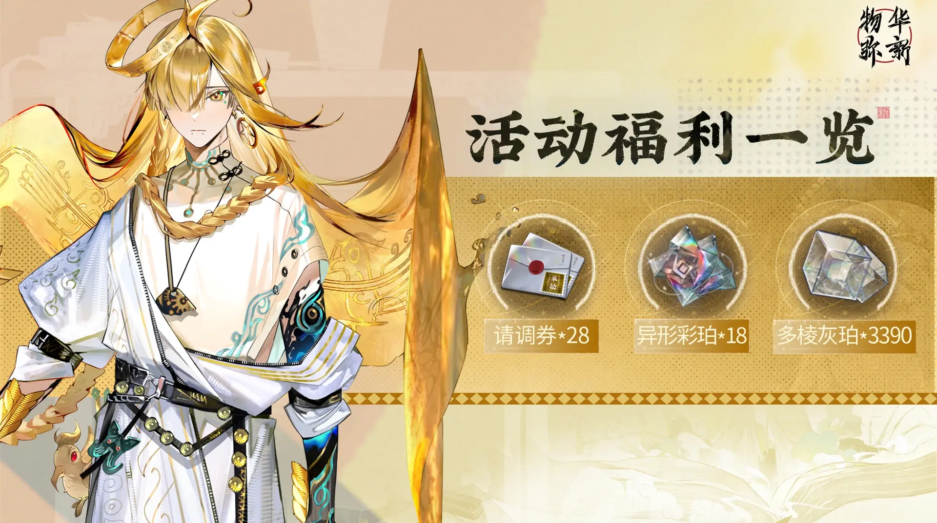全新限时活动「沃土织金」主要包含刻金为刃、金声玉振、金环集市、短途游历多个板块。完成相关任务即可获得异形彩珀、请调券、多棱灰珀、器者养成材料等丰富奖励。