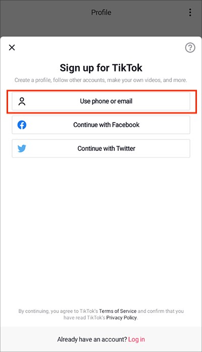 2.在注册方式选择界面,点选"Sign Up With Phone or Email"选项继续操作