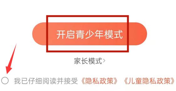 4、在其中勾选接受协议,就能“开启青少年模式”了。