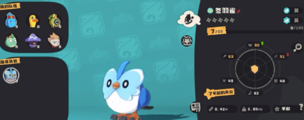 冬羽雀以轻盈灵活著称,基础形态虽体型较小,但飞行速度与闪避能力突出。经进化后成长为青岚,综合性能显著提升,养成性价比优异,尤其适合资源有限的新手玩家。其常出没于雪山区域及冰系主题场景,推荐前往雪人谷进行捕捉——该地点冬羽雀刷新频率较高,捕获成功率相对理想。建议优先选择25级以上个体,便于后续技能学习与等级培养,避免重复捕捉造成资源浪费。