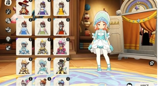 美术风格严格遵循IP世界观设定,以童话幻想为基调。例如“天鹅礼裙”采用渐变天蓝色布料与羽毛装饰,呼应水系魔法意象;“蜂后华服”则运用高饱和度明黄与哑光黑拼接,强化昆虫系精灵的锐利气质。每套时装均配备独立动作特效与UI展示动画。