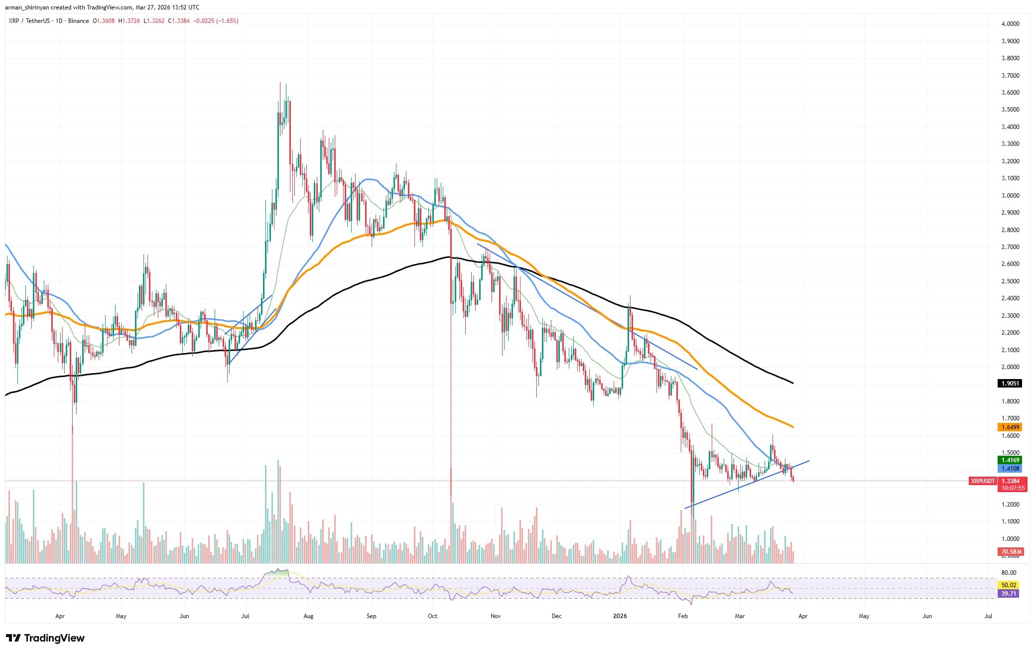 XRP正逼近一个关键技术点位——看似下跌的趋势可能演变为传统熊市陷阱。该资产价格现处于1.30-1.35美元区间,已压缩至接近2026年区间下沿的紧密结构。而以太坊正在死守2000美元关键位,一旦失守将引发螺旋式下跌。