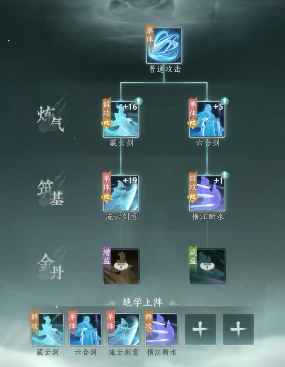 绝学解锁遵循双重硬性门槛:其一为角色当前境界。所有绝学均按修真境界严格划分——筑基期仅开放筑基期绝学,金丹期对应金丹期绝学,元婴期对应元婴期绝学,依此类推。境界未达则无法查看、学习或升级对应层级绝学。提升境界需先积累足量修为:可通过离线挂机持续获取基础修为;亦可进入炼丹界面,炼制并服用增益丹药以加速修为增长。当修为达到当前境界上限时,触发突破机制,成功渡过雷劫后即晋升至下一境界。