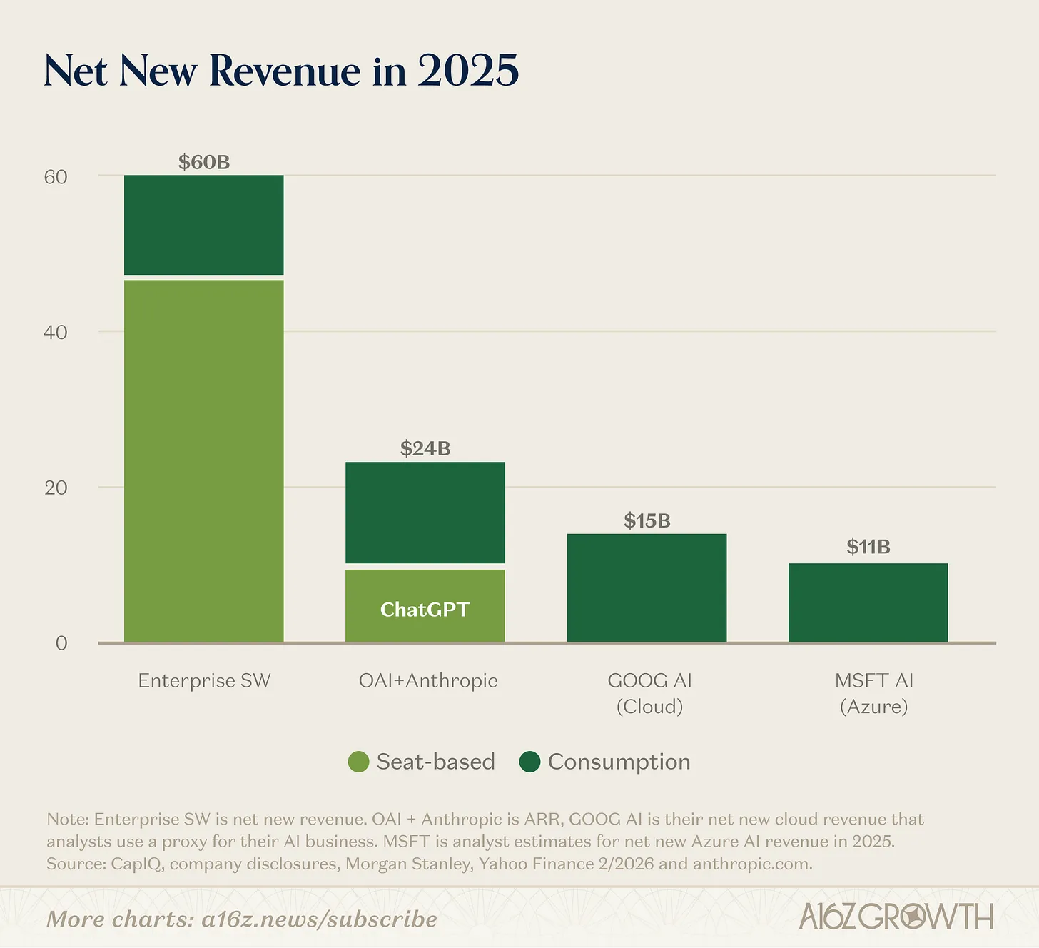 但请记住,你的客户最先、最明显的AI节省来源是劳动效率,这意味着席位将是他们寻求削减成本的地方。相比之下,新的增长将越来越多地体现在代币、消耗量、自动化、结果和机器驱动的工作流上。