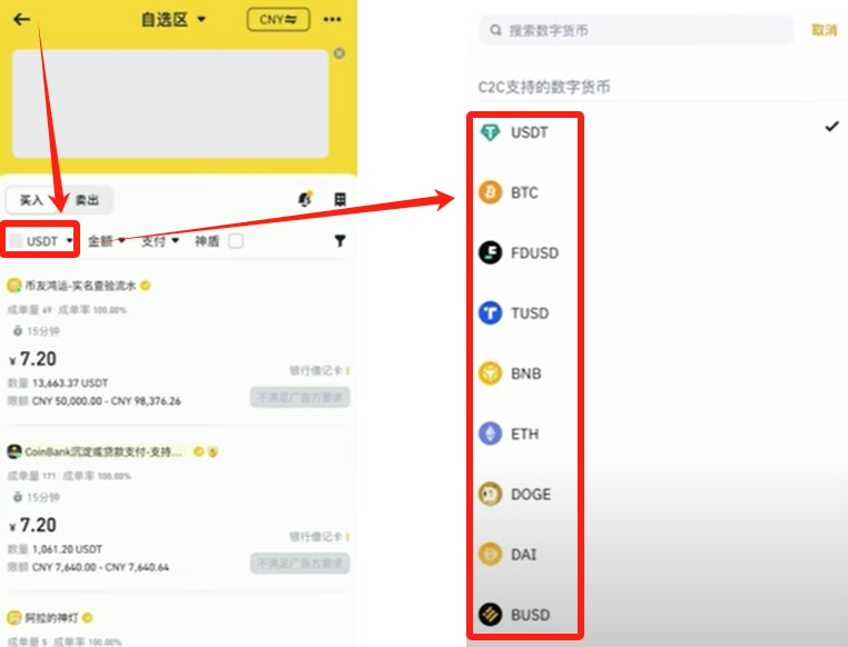 通过C2C交易购买USDT时,建议选择神盾认证商家以降低风险。将USDT划转至现货账户后,即可在行情页面进行比特币等数字货币的买卖操作。