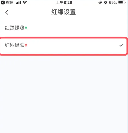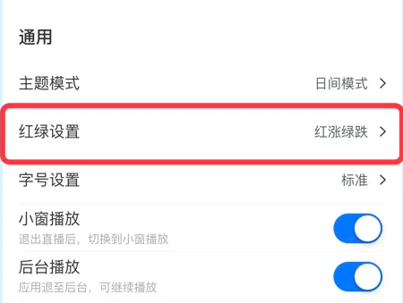 在【红绿设置】选项,点击【红涨绿跌】选项。