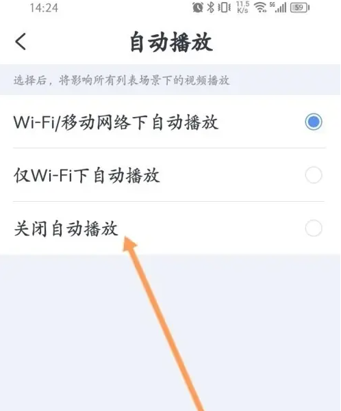 第三步,进入视频播放设置页面,点击自动播放