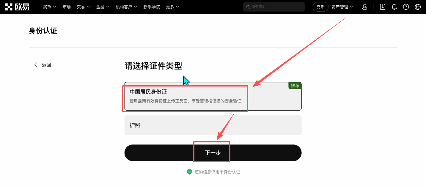 欧易平台的实名认证流程高效便捷,平均5分钟即可完成。主要包含证件上传和生物识别两个核心环节。