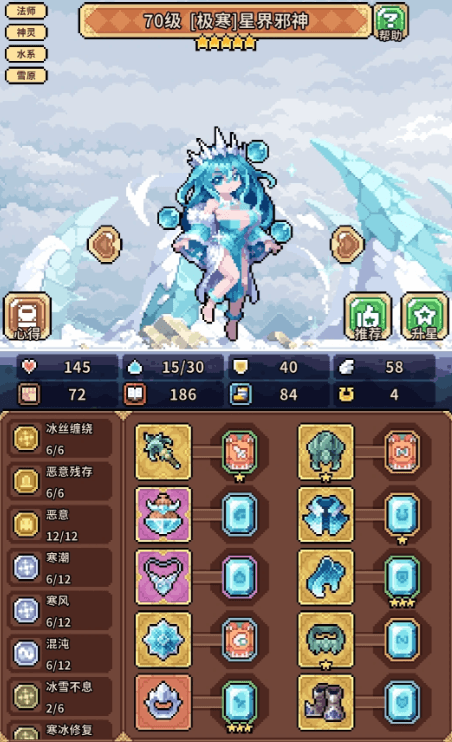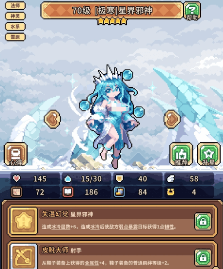 核心成员包括异化星界邪神、异化圣剑之灵与宁静水灵(或林中仙女)。其中,异化星界邪神承担主输出职能,其五星被动技能“失温幻觉”可基于目标所受冰冻层数叠加增伤效果,建议优先点满;异化圣剑之灵作为副C,提供协同伤害与破防支援;宁静水灵则兼顾群体治疗、持续回能及全队增伤功能,是维持队伍续航与爆发节奏的关键辅助。