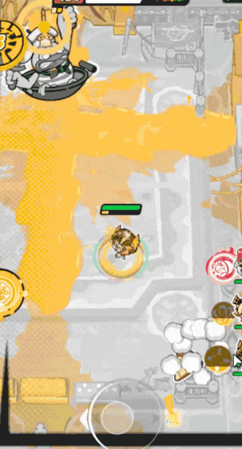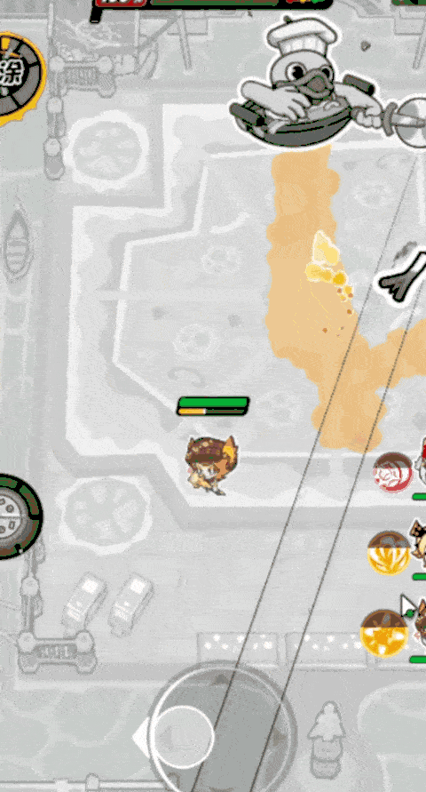 1. 朝玩家扔出大葱并使用擀面杖对区域进行打击,之后会生成食物分散开进行爆炸