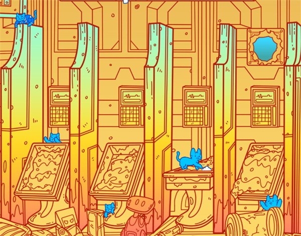 浴室里,第四个猫砂盆上方会有一个方形面板。点击面板猫爪会出现在墙上炸出一个洞。