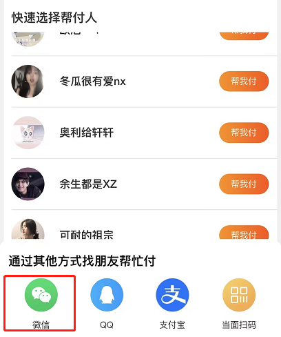1. 选定商品后进入支付界面,选择"找朋友代付"功能
