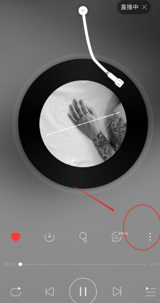 第一步:启动网易云音乐APP,在正在播放的歌曲页面找到三点菜单图标并点击。