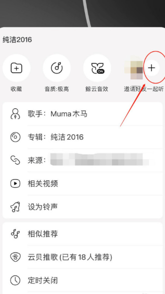 第二步:在弹出的功能选项中,选择"邀请好友一起听"按钮。