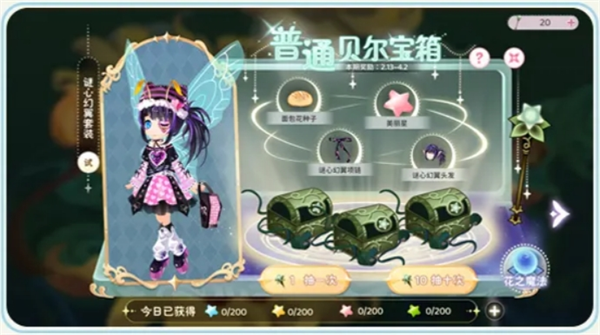 贝尔宝箱是古灵仙地的馈赠,玩家可通过在线时长或小游戏获取各种星星,消耗星星唤醒星光棒即可打开宝箱领取奖励,会有服装获取。