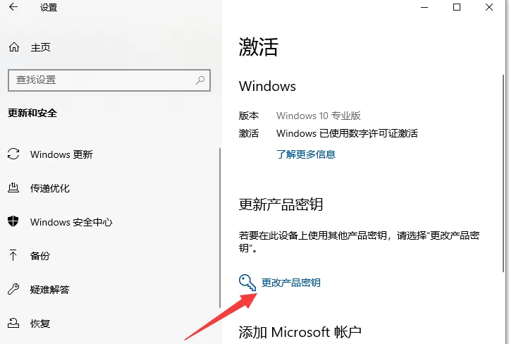 4. 选择更改产品密钥功能