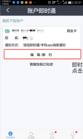 3、在“账户即时通”界面,选择“编辑/解约”,具体如下图