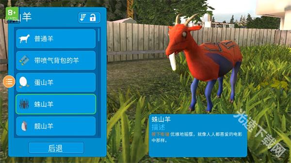 4、在角色选择界面可查看不同山羊的专属能力,如喷气背包山羊适合高空探索;