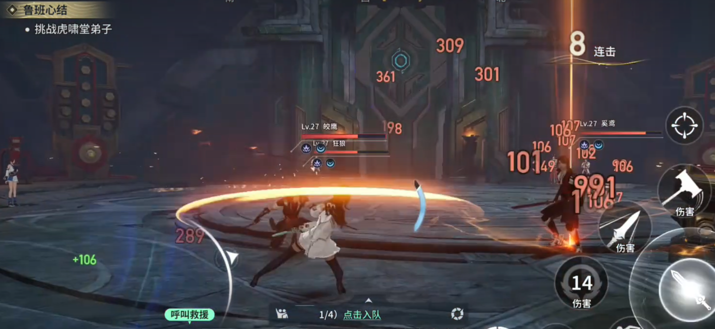 进入二楼后,将遭遇虎啸堂弟子NPC,开启阶段式挑战任务。若单人战力不足,可邀请好友协同作战;若暂无固定队友,游戏内设有实时匹配支援功能,支持随机召唤其他在线玩家协助。