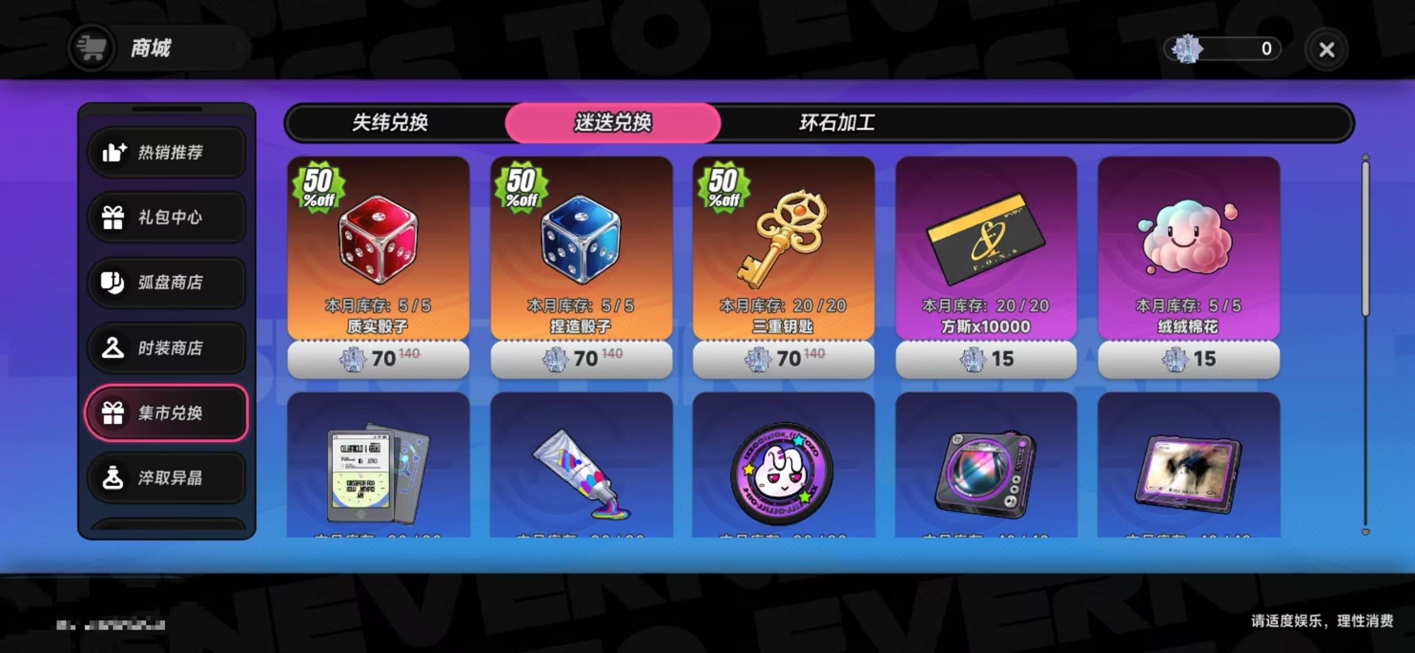 迷迭兑换商店位于主界面商城模块内,路径为:商城→集市兑换→迷迭兑换。进入后将完整展示全部可兑换项。推荐兑换顺序如下:首推红色骰子,用于参与限定角色召唤及稀有资源抽取;其次为蓝色骰子,适用于常驻棋盘内容的稳定获取;二者共同构成核心养成动线的基础保障。