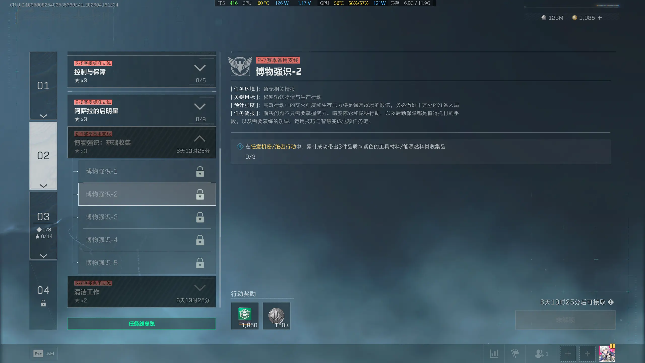 任务奖励:行动经验x1850、哈夫币x150000