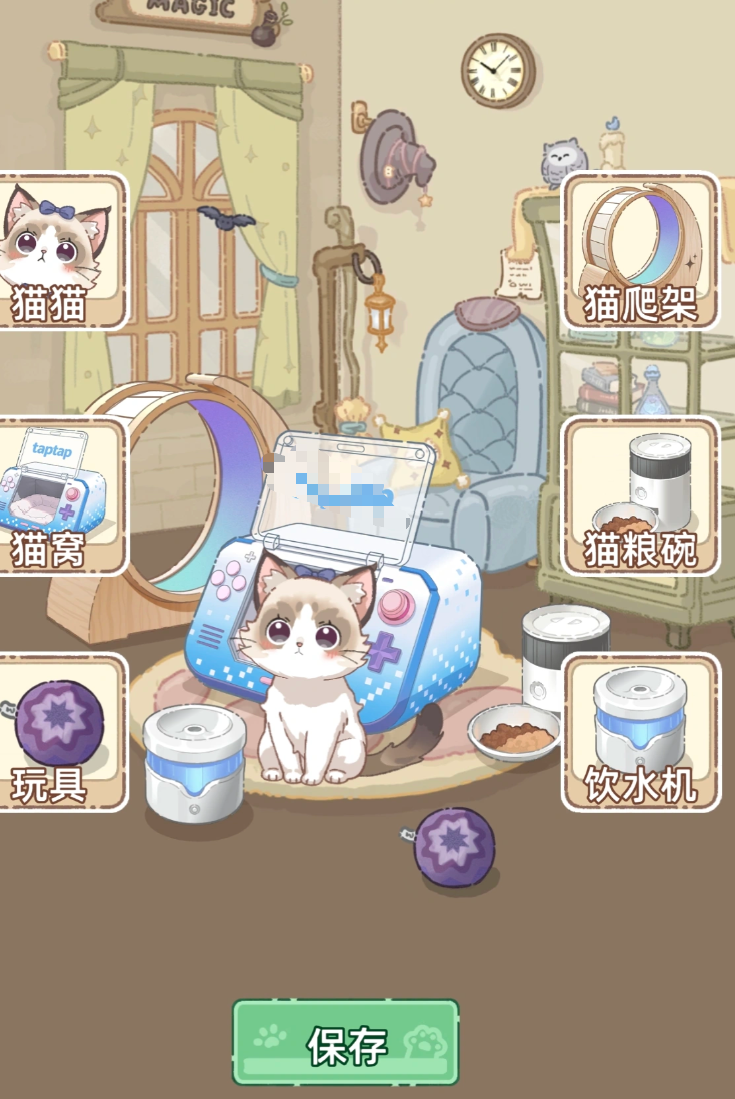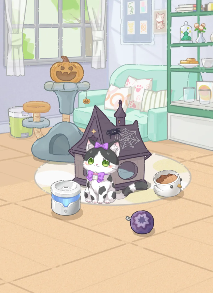 游戏收录橘猫、三花、奶牛猫、布偶、英短等数十种真实猫咪品种,每只均配备差异化外观建模、独立性格标签与专属动态行为。性格设定覆盖傲娇高冷、粘人贴贴、慵懒摆烂、活泼调皮四大维度,高度还原现实猫咪行为逻辑。亲密度系统为成长核心机制,玩家可通过喂食、使用逗猫棒、共处休憩等互动方式提升关系值,逐步解锁丰富反馈——例如主动蹭手求摸、翻身露肚皮、叼玩具赠予访客等拟真彩蛋。