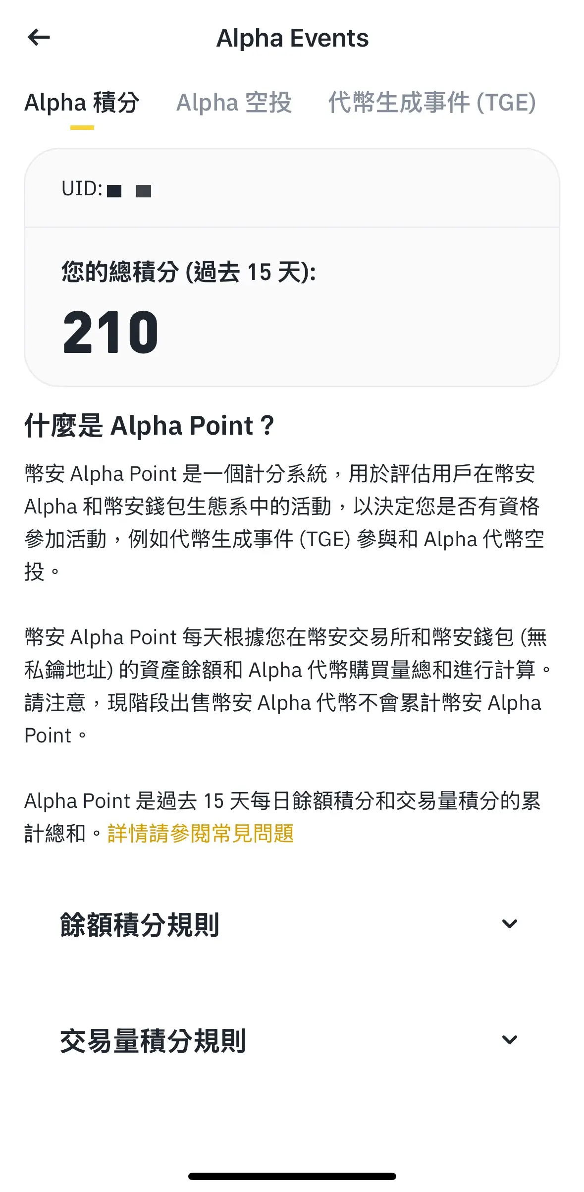 BSC链交易享有双倍积分优惠,但需注意仅买入Alpha代币时才计入交易量统计。