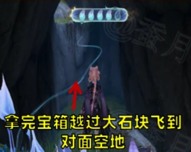 42、然后踩搭建的石块跳上停住的大石块,再飞到对面宝箱处