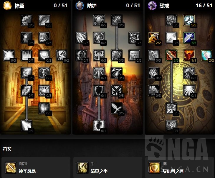 和正义之怒的联动较差,起始仇恨主要靠复仇者之盾,后续则靠神圣风暴的伤害建立仇恨,导致4目标及以上仇恨能力较弱。